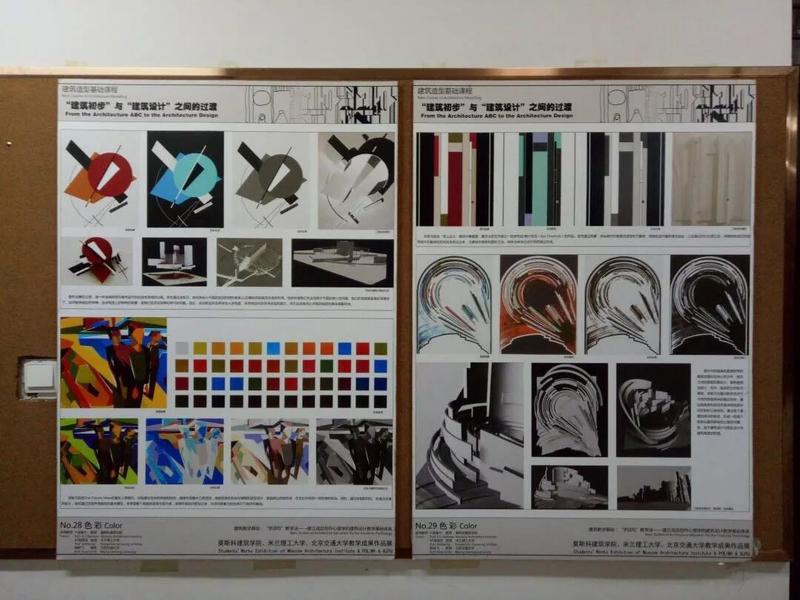 The exhibition is jointly organized by Beijing Jiaotong University, Milan Polytechnic University and Moscow Institute of Architecture. The curators are Professor Han Linfei of Beijing Jiaotong University, Professor Maurizio Merrigi of Milan Polytechnic University and Academician D. Sividkovcki of Moscow Institute of Architecture. Contents of the exhibition are the important teaching results of the basic architecture courses jointly produced by Moscow Architecture Institute, Milan Polytechnic University, and Beijing Jiaotong University.