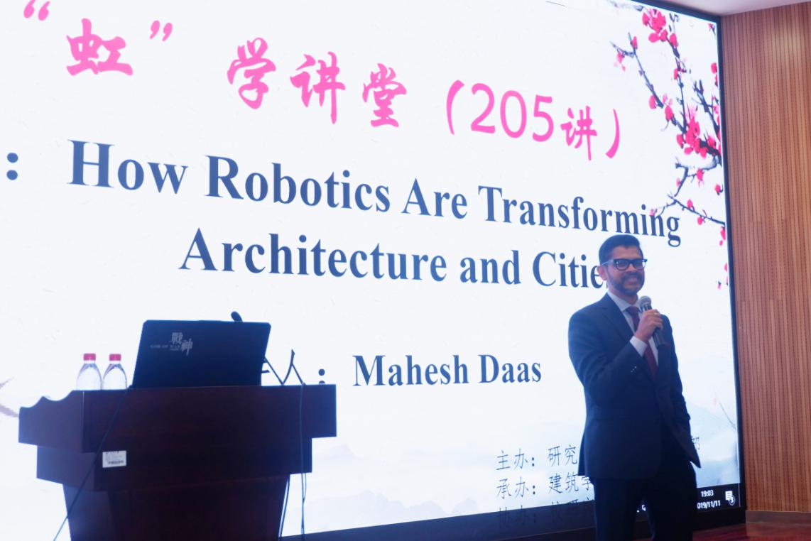 On the evening of November 11, 2019, the lecture 205th of "Rainbow" Lecture Hall, sponsored by the Graduate School/Graduate Work Department, undertaken by the School of Architecture and co-organized by the Graduate Science and Technology Association of the university, was held as scheduled in the Bosheng lecture hall of the east courtyard of the main campus. Professor Mahesh Daas, president of the Boston School of Architecture, delivered a presentation titled "How Robotics are Transforming Architecture and Cities". More than 240 teachers and students from many colleges attended this lecture. The lecture was presided over by Liu Qibo, deputy dean of the School of Architecture.