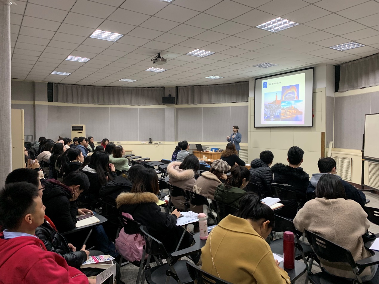 On December 23, 2019, Dr. Thomas Ohlson Timoudas and Dr. Wang Qian respectively delivered two academic lectures in the semi-circle lecture hall on the second floor of achitecture building in Xiaozhai campus, Chang 'an University. The topics of the two lectures are " Advanced Applications of IoT Technologies for Developing Smart and Sustainable Cities for the Future " and " Development of Future Smart and Sustainable Office and Residential Buildings in Europe ".The lectures were hosted by Liu Qibo, Deputy Dean of Architecture School, and translated by Ren Juan, Secretary of Foreign Affairs. Teachers and students from related majors of the architecture school attended the lecture.
