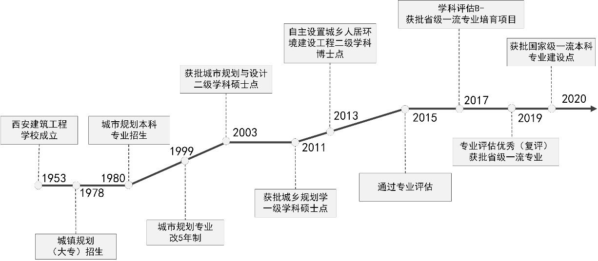 The Urban and Rural Planning major of Chang'an University has a history of more than 40 years. It began to enroll undergraduate students in 1980 (the first one in Northwest China). In 2017, the fourth round of discipline assessment was B-, and in 2019, the National Higher Education Assessment was excellent. In 2020, it will be approved as a national first-class undergraduate program construction site.