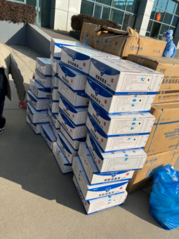 捐赠的消毒水、口罩及防护服