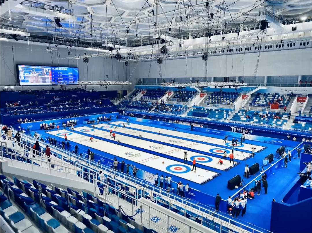 在北京冬奥,国家游泳中心承担起全新的使命,完成了从水立方到冰立方的转换,成为冰壶比赛的场馆。可拆装的轻质结构和新型的制冰工艺,都体现了科技冬奥与可持续理念。场馆日后也会根据需求在水立方与冰立方之间进行转换。