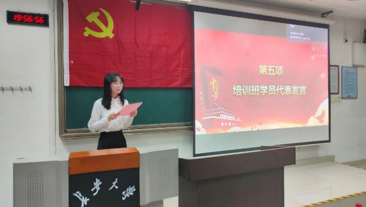 学办副主任洪诗迪宣读考核及学习纪律要求;班主任王杰介绍本期培训班授课及学员情况;殷佳璇代表培训班学员进行了发言。