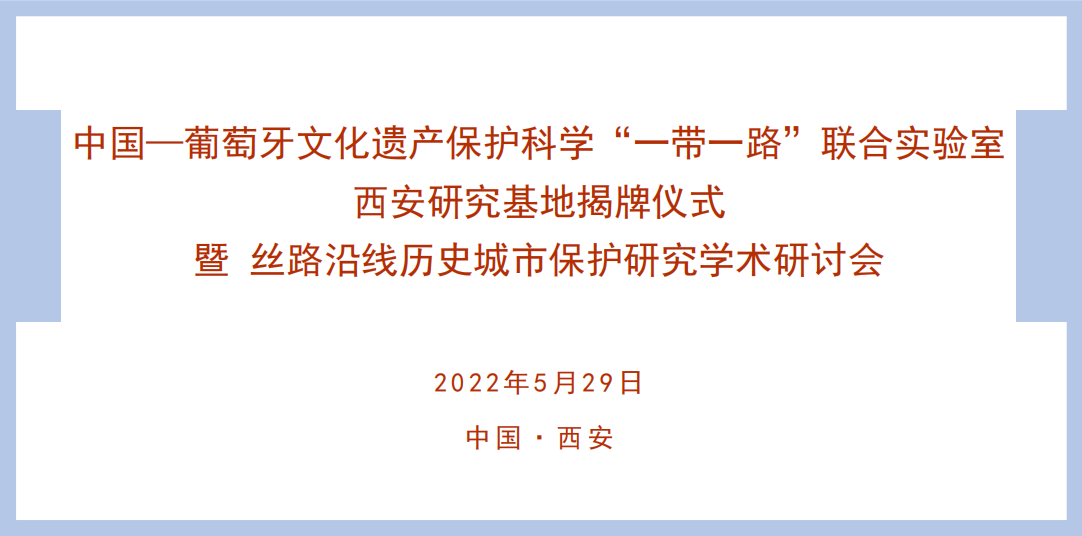 中国-葡萄牙文化遗产保护科学“一带一路”联合实验室西安研究基地揭牌仪式于2022年5月29日举行,同时聚焦丝路沿线文化遗产、历史文化名城的保护与开发、丝路文化传承弘扬等重大问题,开展理论与实践领域的学术交流活动。