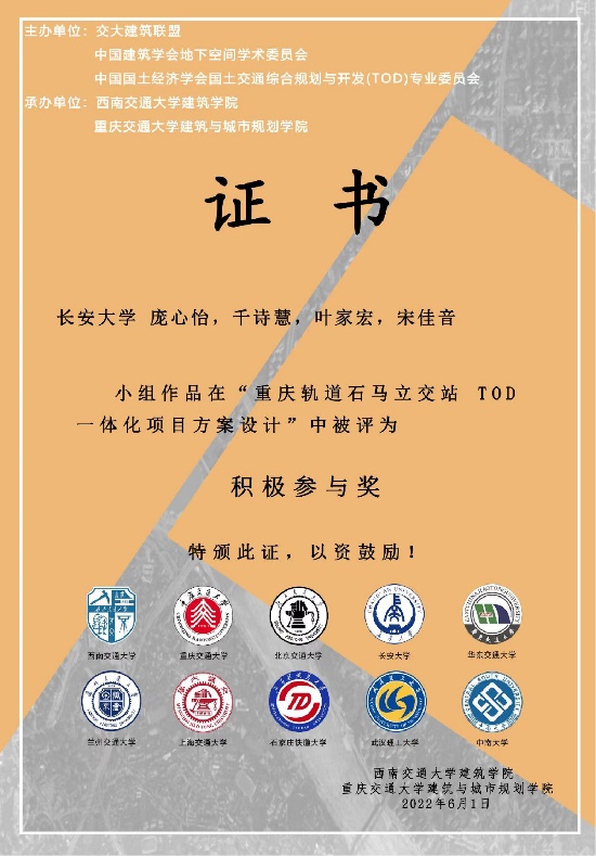 包括麻豆传媒 、上海交通大学、北京交通大学、西南交通大学、重庆交通大学在内的全国10所知名高校共16组学生分组进行终期汇报答辩,经来自高校、企业等各方特邀专家以及答辩老师的共同评议与选拔。我院团队作品“无界之城:智慧生态系统下的TOD社区模式探索”(学生:邬亨旺、岳乐、贝莎莎、李蕤泽,指导教师:张磊、陈茜)获得最佳创新设计奖;我院团队作品“山城记:多维归途,秩序弥城——重庆轨道石马立交站TOD+—体化项目”(学生:庞心怡、千诗慧、叶家宏、宋佳音,指导教师:张磊、陈茜)获得积极参与奖。