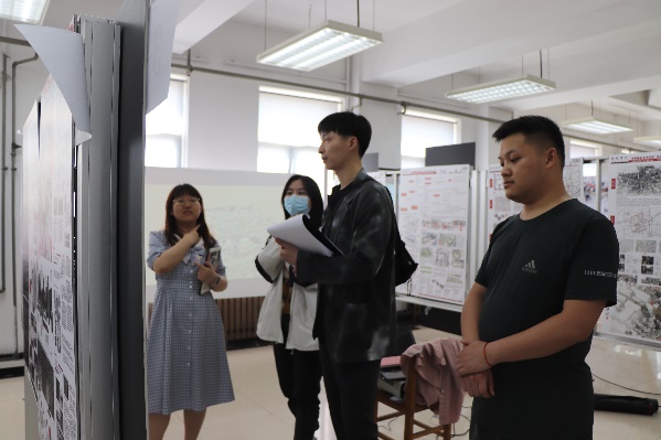 On the scene of the exhibition, graduates from the four universities learned from each other and exchanged professional experience, which ignited a strong academic atmosphere. Students' design works combined with the major, based on reality, focus on practicality and innovation, the design theme shows incisively and vividly. The booth at the event site is divided into 8 groups with the scheme planning and design group as the unit. During the evaluation and exhibition, teachers of each school visited and browsed the graduation design works, and students showed the concept and content of architectural design comprehensively through video, PPT display, drawings display and other ways. The whole process fully demonstrates the students' professionalism and adaptability. The participating teachers highly praised the design of the students and put forward the existing problems and solutions. The public reply was well organized, and the students benefited a lot.