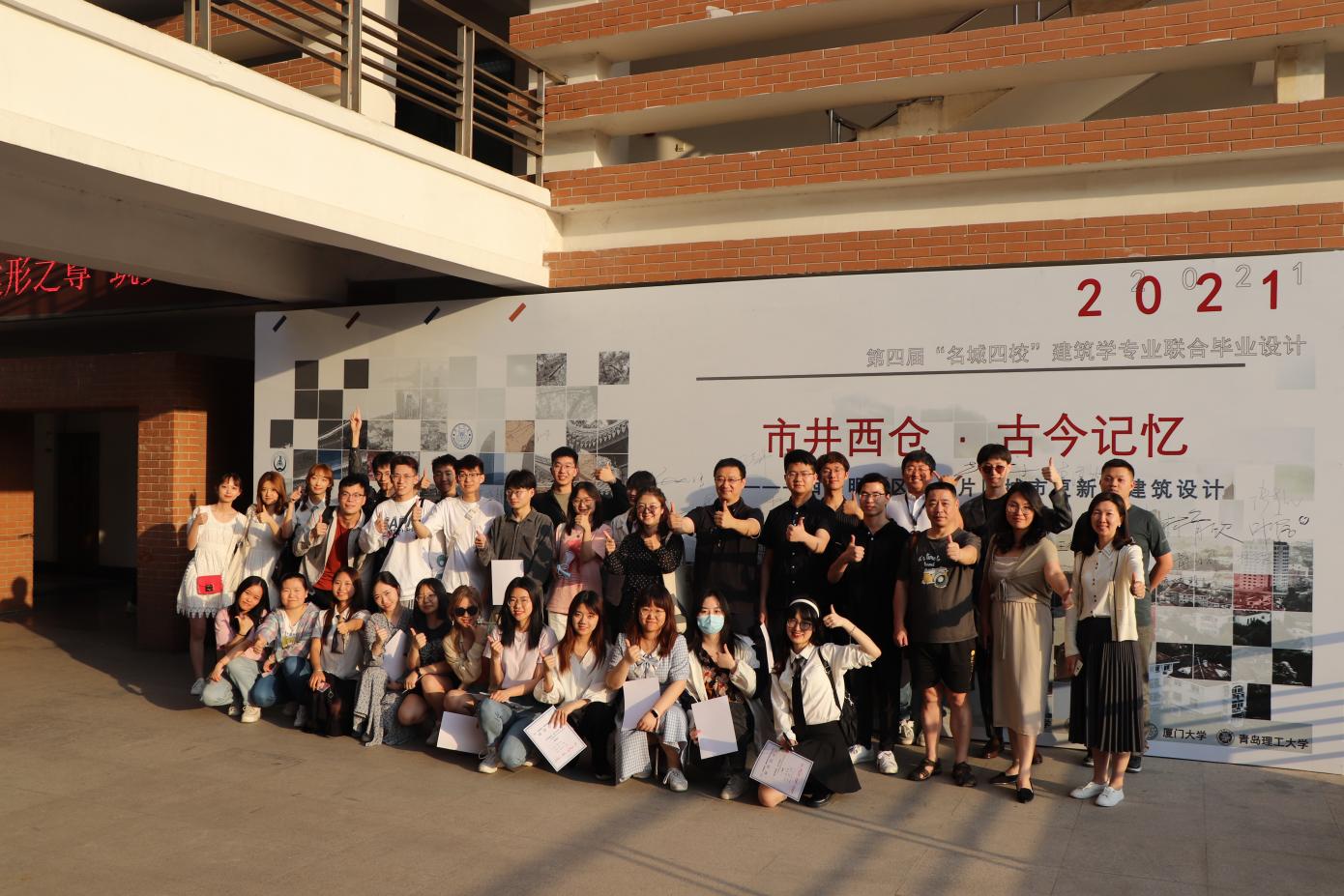 On June 4th, Chang'an University, Qingdao University of Technology, Xiamen University and Suzhou University held the 4th "Four Schools in Famous City" Joint Graduation Design exhibition and reply in the second floor exhibition hall of School of Architecture and Urban Rural Planning of Qingdao University of Technology successfully. Eight students from architecture major of our school attended the final reply under the leadership of two teachers, Pu Wenjuan and Wang Jiawei.
