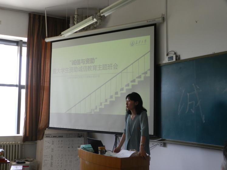 最后,是基础知识学习环节,团支书张懿同学带领大家进行“诚信与资助”主题学习。张懿同学依次从资助诚信、学术诚信以及生活诚信三个方面展开,为同学们讲述具体国家助学贷款流程、考试考规考纪、妨碍疫情防控工作后果等。
