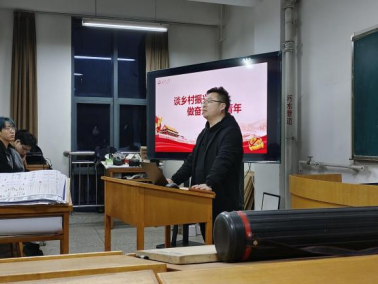 建筑四班、城乡规划一班思政班主任刘文凯老师向大家阐述了党的二十大的主要内容和会议精神,从“我眼中的乡村振兴”和“找准人生航标”两个方面,谈了自己在乡村振兴方面的几点想法,并寄语同学们:青年强,则国家强。当代中国青年生逢其时,施展才干的舞台无比广阔,实现梦想的前景无比光明。广大青年要坚定不移听党话、跟党走,怀抱梦想又脚踏实地,敢想敢为又善作善成,立志做有理想、敢担当、能吃苦、肯奋斗的新时代好青年,让青春在全面建设社会主义现代化国家的火热实践中绽放绚丽之花。