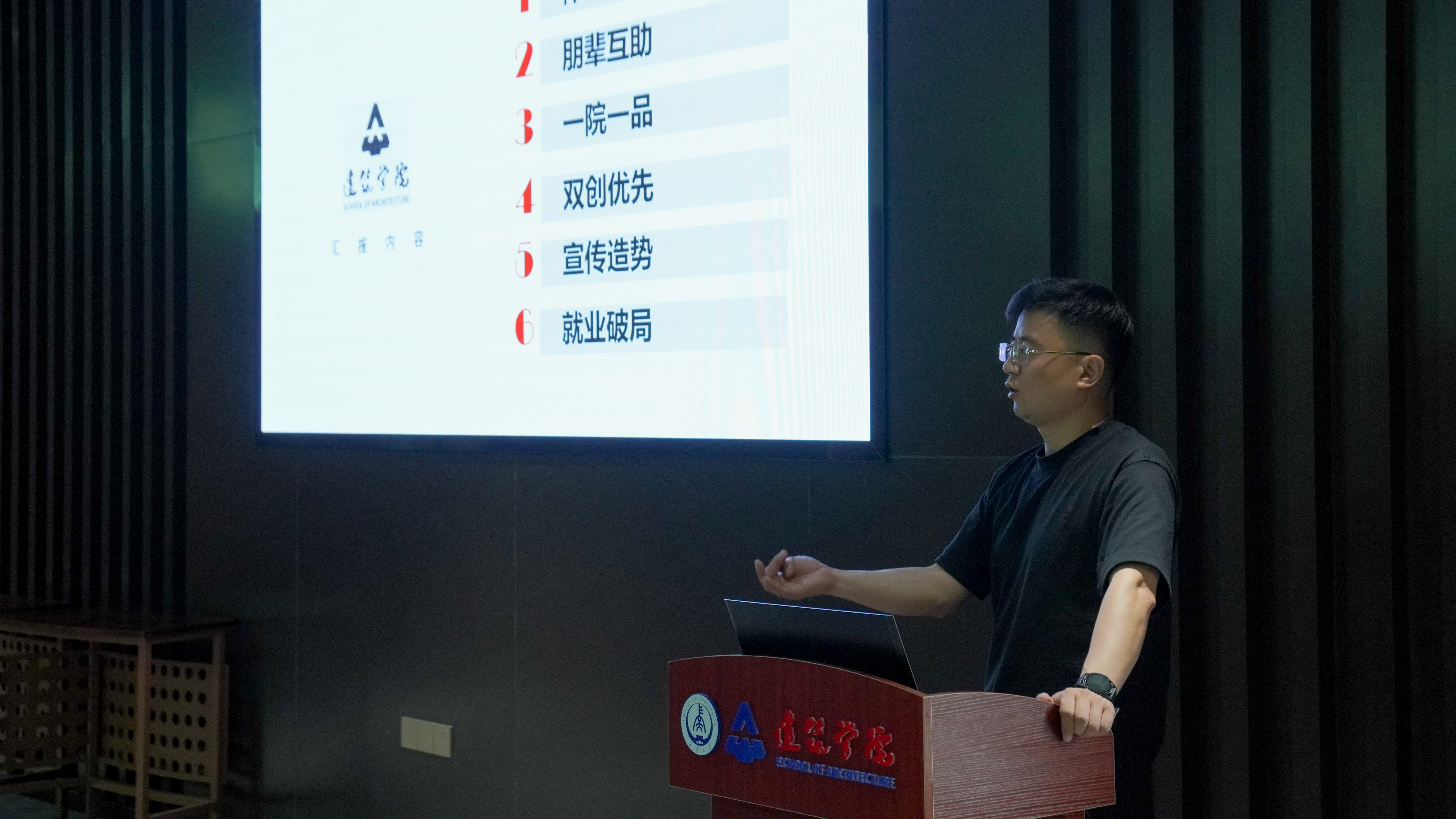 刘鹏书记首先强调了”朋辈互助”的重要性,着重感谢了优秀杰出校友对学院“建筑日”品牌活动的大力支持和专业指导,介绍了校友们对在校师生创新实践能力的高度认可和赞誉,讲述了校友们对母校的深厚感情。凭借广大校友的支持和帮助,学院在建筑类专业领域中不断发展前进,希望能够进一步密切与校友联络,也希望在校同学不断加强与毕业师兄师姐们沟通交流,做好传承。