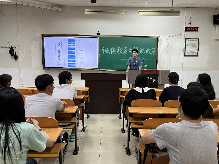 为大力宣传国家学生资助政策及其成效,充分发挥学生资助的导向和育人功能,激励同学们担当时代使命、奋发自强、成长成才,麻豆传媒 6月8日晚于wm1112教室开展“感恩诚信,助学筑梦” 诚信教育与资助政策主题宣讲会。会议由辅导员李博轩主持,社会奖助学金获得者以及学院全体勤工助学岗位的学生参加了会议。