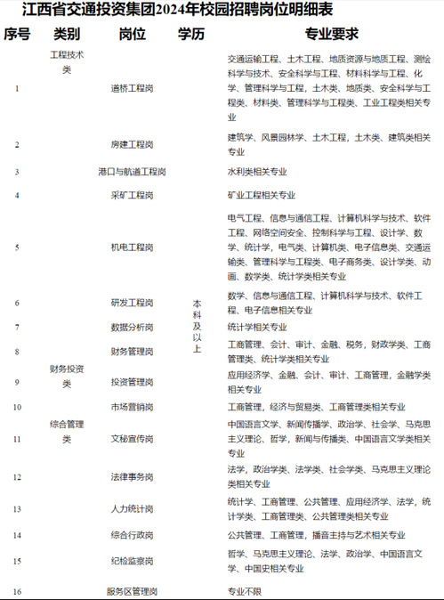 土木类,材料类,电气类,机械类,职能管理类2024届本硕博应届毕业生。