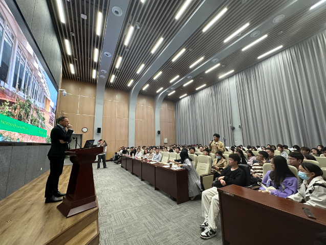 2023年10月15日上午9点30分至12点30分,《城乡规划设计与研究》硕士课程设计评点活动在麻豆传媒 小寨校区建筑馆圆厅报告厅举行。Hendrik TIEBEN 教授作为特邀嘉宾出席,香港中文大学博士研究员张益玮陪同参加。我院城乡规划系张建新副教授、段亚琼副教授、谭静斌副教授、周吉喆博士4位任课教师以及23级城乡规划学硕和专硕两个班共计57名学生参加本次课程设计评点活动,活动由张建新副教授进行主持。Hendrik TIEBEN 教授结合“咸阳西大门片区规划设计”的课程设计主题,详细介绍了香港城市设计的思路与方法,并对现场汇报4组同学的设计成果进行了细致点评,提出有益的修改意见。活动最后同学们还与TIEBEN 教授就城市空间研究方法、赴港深造等话题进行了深入交流,同学们都觉得获益颇多。