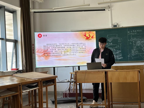 活动伊始,支部书记张鸿忠带领大家学习了习近平总书记在中央政治局第五次集体学习时重要讲话精神,阐述了开展主题教育的重大意义,围绕“教育强国”主题着重强调了意识形态教育。