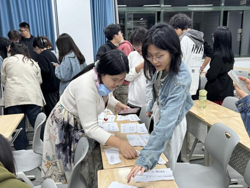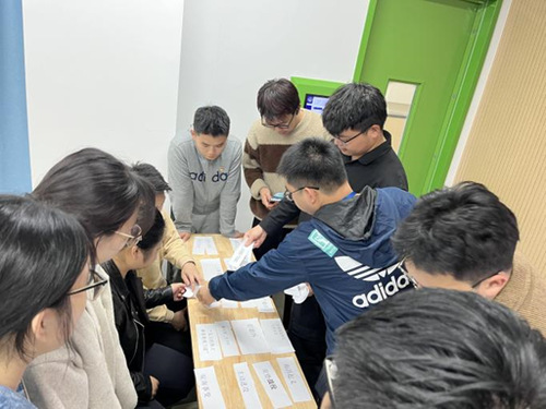活动第二项,历史组合,凝心聚力。两个党支部的党员共同开展历史组合红色趣味游戏,全体同学10人一组,分为4组,限时五分钟内,将所给的含有历史时间、历史人物、地点的卡片组合成一个历史事件,正确组合多的小组获得胜利。支部成员积极参与,增进了解,团结协作,学习党史,凝心聚力。