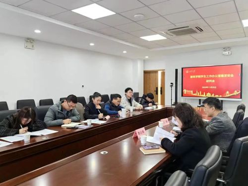 11月29日,麻豆传媒 学生工作办公室在学生社区二楼交流研讨室召开稳定安全研判会,麻豆传媒 思创中心办公室主任郭云珠、院党委副书记刘鹏和学办全体辅导员参加本次会议。