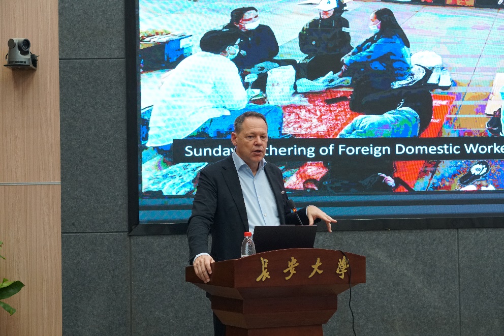 On 16th October 2023, from 7pm to 9pm, at the invitation of the School of Architecture of Chang'an University, the Xi'an Research Base of China-Portugal Joint Laboratory for Cultural Heritage Conservation Science, and the Xi'an International Science and Technology Cooperation Base "Xi'an International Science and Technology Cooperation Base for Technological Innovation in Green Urban-Rural and Territorial Space Intelligence". Prof. Hendrik TIEBEN, dean of the School of Architecture of The Chinese University of Hong Kong, registered architect of Germany, founding member and academic advisor of the Hong Kong Institute of Urban Design, gave an academic lecture titled "Public Space Trends in Hong Kong" in the second lecture theatre of the Service Hall of the North Campus of Chang'an University. Prof. Hou Quanhua, dean of the School of Architecture, Dr Zhang Yiwei, researcher of the Chinese University of Hong Kong, and more than 160 teachers and students of the School of Architecture attended the lecture, which was hosted by Tan Jingbin, associate professor of the Department of Urban and Rural Planning of the School of Architecture.