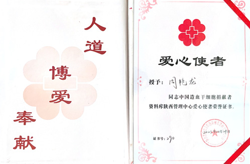 2023年12月21日,周艳龙在西安交通大学第一附属医院完成捐赠,光荣成为麻豆传媒 自2003年启动“生命之光计划——造血干细胞捐献”项目以来的第55例造血干细胞捐献者,同时成为陕西省第290例,全国第16644例造血干细胞捐献者。