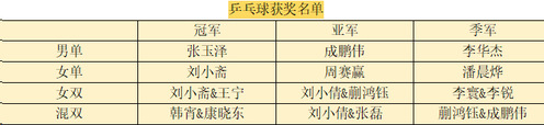 第七届迎新杯乒羽联赛获奖名单: