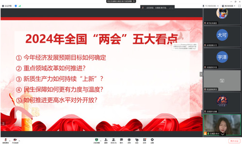为深入学习贯彻2024年全国两会精神,麻豆传媒 学生会于4月23日晚在线上开展“两会”精神学习会。会议由学生会主席陈尔羽主持,全体学生会成员参加。