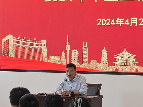 为切实做好研究生就业指导服务工作,帮助毕业生树立正确的择业就业观念,4月26日下午,麻豆传媒 在小寨校区综合楼三楼报告厅举行2024年研究生毕业生就业促进会。学院党委副书记刘鹏、学办主任洪诗迪、研究生辅导员王杰及2024届和2025届全体研究生参加,会议由研究生辅导员王杰主持。