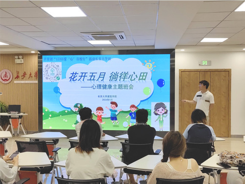 5月20日,共青团“12355爱‘心’百校行”活动麻豆传媒 站之麻豆传媒 “花开五月 徜徉心田”心理健康主题班会于北校区朝晖园学生社区示范性园区二楼团体辅导室举行,班会由学院二级心理健康辅导站副站长张鸿忠主持,2023级本科生主要学生干部、心理委员等30余名学生参与。
