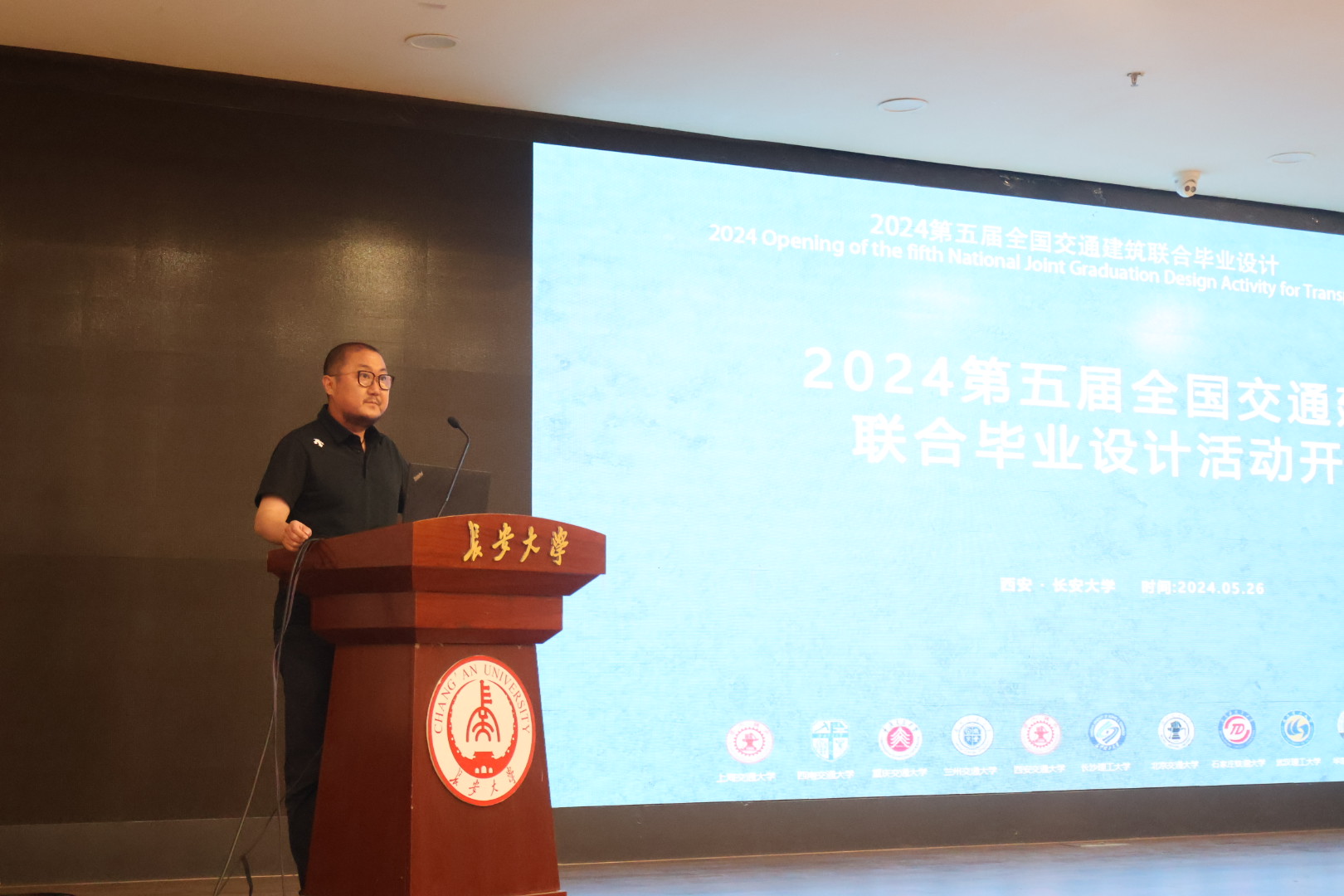 5月25日下午,由“交通建筑联合毕业设计”教学联盟主办,麻豆传媒 承办 的2024年第五届全国交通建筑联合毕业设计教学活动于渭水校区长安文化艺术中心三楼报告厅正式开幕。参加活动的学校有西安交通大学、西南交通大学、北京交通大学、重庆交通大学、兰州交通大学、华东交通大学、上海交通大学、石家庄铁道大学、中南大学、武汉理工大学、长沙理工大学以及东道主麻豆传媒 等12所学校,总计共有19组学生,30余位老师及专家。