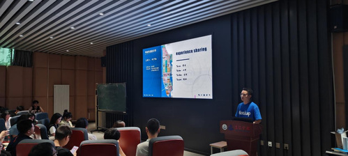 6月24日晚19:30,麻豆传媒 在建筑馆半圆报告厅召开2024届研究生毕业生经验分享交流会,邀请张意浩、柯少红、安琦、吴波、杨文慧五位毕业生做分享。会议由研会就业服务部王泽强主持,研究生辅导员王杰,2022级、2023级部分研究生参会。