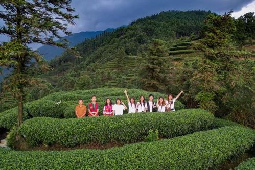 实践队员行走在山间茶园
