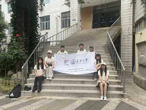 图为实践队成员结束实践后于系馆前合影