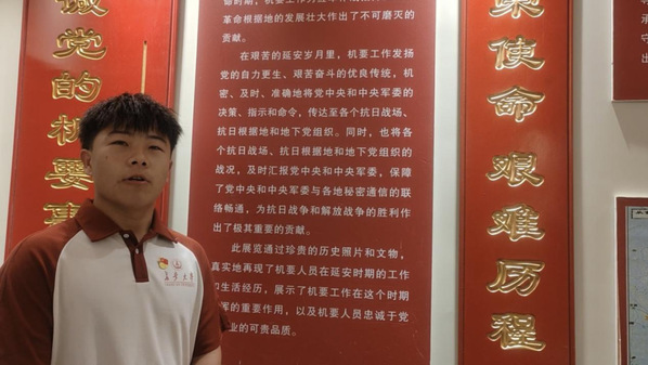 踏入枣园,实践队成员们便踏入了到了中央军委枣园作战室的旧址。通过实践队员、党员代表宋艾义的讲解,队员们了解到了枣园作战室在抗日战争和解放战争时期,积极致力于收集日军及国民党军的情报,深入剖析军事斗争的实时形势,精心研究战局的发展动向,并据此编制精确的作战指令,为我国抗日战争与解放战争的最终胜利做出了不可磨灭的贡献。