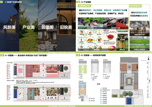 本次“送设计下乡”活动中,实践队通过前期调研和对丁村现状问题的梳理,以切实提升黄陵县阿党镇丁村村庄风貌为核心任务;以党的二十大报告提出“建设宜居宜业和美乡村”为指导,以二十大报告中提出“建设宜居宜业和美乡村”为指导,以构建“新貌美、产业美、邻里美、旧貌美”的“四美丁村”为目标,提出了村庄入口功能与标识、利用闲置用地打造村庄现有产业示范区、产业文化宣传等提升优化策略,同时就丁村遗存的百年古槐、明清窑洞的保护与利用,以及村民公共活动空间进行了深化设计,方案不仅做到对公共空间补足安全性、加强功能性、增加观赏性,更展现了丁村的传统风貌,重塑了村民心中的乡愁回忆。