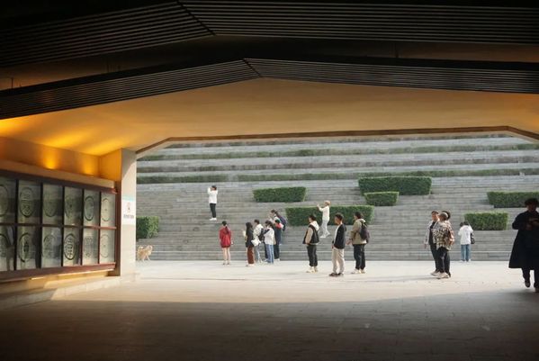 活动首先参观了秦二世陵遗址博物馆,该地处曲江池遗址公园南侧的秦二世陵遗址公园之中,是一座讲述秦国发展与反思秦人亡国历史的主题博物馆,整个博物馆分为2层共分主题陈列8大场景。博物馆以秦二世一生中经历的主要历史事件作为叙述主线,以秦国文明的兴起及衰落作为叙事背景,展馆充分利用建筑提供的功能空间,安排相关的展陈故事及场景,并利用声、光、电、影像、模型、道具文物等科技手段,打造了一个历史故事与当代技术手段相结合的现代化展览馆。当我们走在展馆里,看到秦始皇骊山陵的复原模型,无一不为其的宏伟庄严而震撼,却又不得不感叹一声“使秦复爱六国之人,则递三世可至万世而为君,谁得而族灭也?”或许这就是建筑,不仅展现着历史车轮下的滚滚尘埃,更有设计与人文的和谐相处,让人们通过欣赏,跨越千年理解古人,无声的与古人对话。整个遗址博物馆从馆内展陈空间的精心布局与科技手段巧妙融合,从户外遗址区景观与历史氛围的和谐营造,到体验区传统建筑技艺元素的融入,无不体现着建筑设计的魅力。
