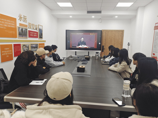 本科生党支部党员正在观看直播
