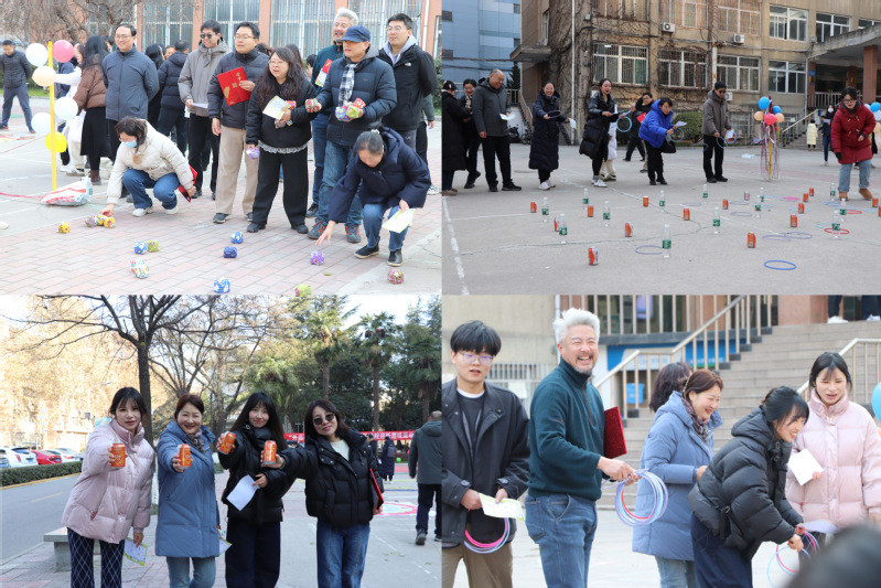 活动现场,一系列精心设计的趣味游戏让教职工们充分放松身心,享受欢乐时光。投壶、趣味套圈、手忙脚乱、许愿沙包、企鹅漫步、高尔夫球等游戏项目轮番上演,教职工们积极参与,现场气氛热烈,展现了学院教职工团结向上、积极进取的精神风貌。