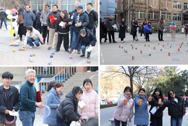 活动现场,一系列精心设计的趣味游戏让教职工们充分放松身心,享受欢乐时光。投壶、趣味套圈、手忙脚乱、许愿沙包、企鹅漫步、高尔夫球等游戏项目轮番上演,教职工们积极参与,现场气氛热烈,展现了学院教职工团结向上、积极进取的精神风貌。