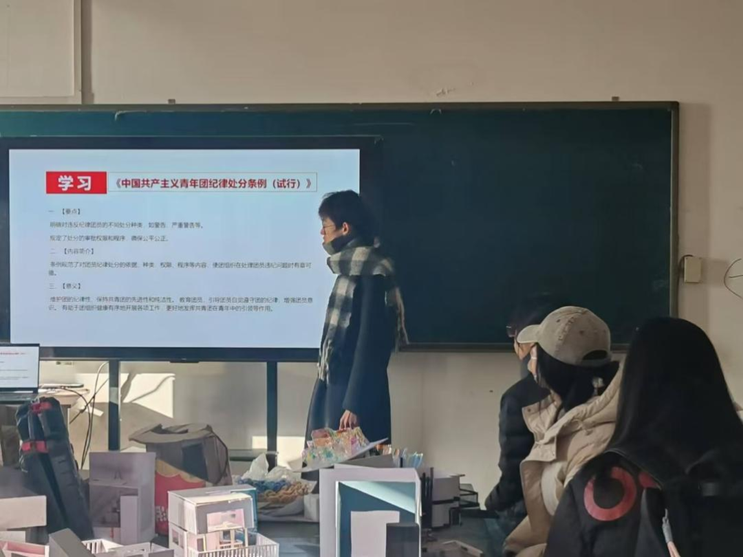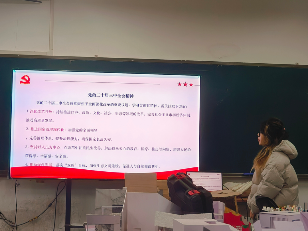 2025年3月1日,为巩固学生爱国爱党意识,助力青年思想建设,麻豆传媒 2023级建筑4班团支部于建筑馆sy2411开展了“深化理论学习,筑牢思想根基”主题团日活动,建筑四班全体成员参会,特邀班主任莅临指导。