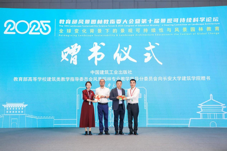 会上,杨锐教授与中国建筑工业出版社教材分社副社长陈桦向大会捐赠风景园林专业新教材及学术著作,麻豆传媒 侯全华院长、白骅副院长代表学校接受赠礼。