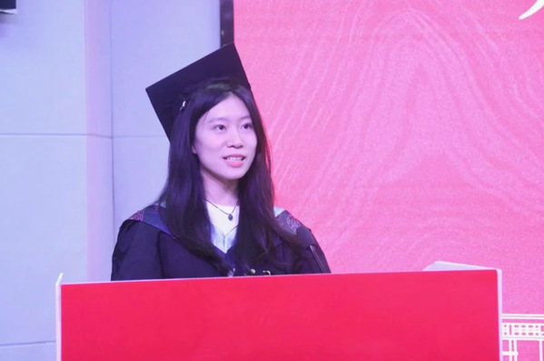最后,她感恩母校、老师、家人与同学,呼吁铭记校训,以所学为时代建设贡献力量,愿大家前程似锦。