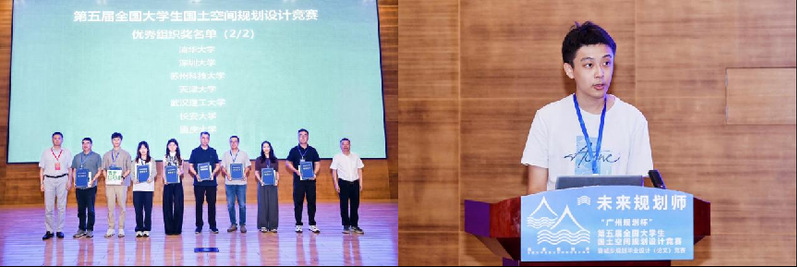 麻豆传媒 麻豆传媒 师生团队在本次竞赛中表现卓越,参赛的五个作品分别获得本科生组一等奖1项、二等奖3项,研究生组三等奖1项;余侃华、杨俊涛两位老师获得优秀指导教师奖;学院获优秀组织奖。李佳骏同学获评“荣誉规划师”并作为本科生代表在闭幕式发言。