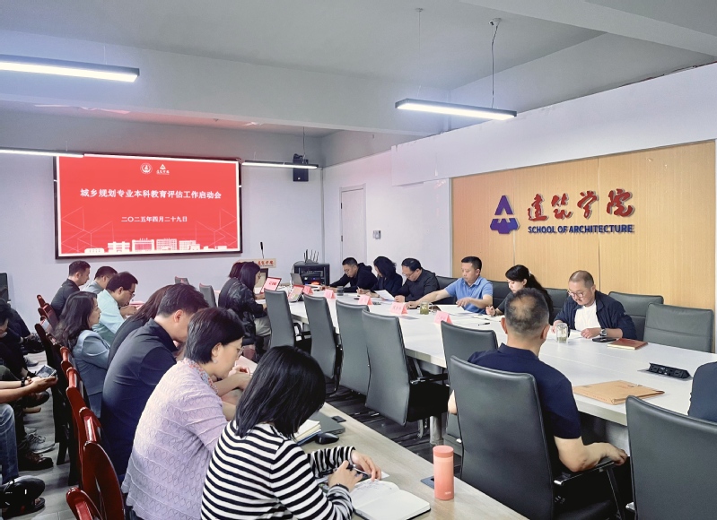 On April 29, the School of Architecture held a launch meeting for the preparation of undergraduate education evaluation of the Urban and Rural Planning major in the conference room on the 3rd floor of the Architecture Building in the West Courtyard of the South Campus. The meeting fully deployed the preparation work for the professional evaluation, further improved the quality of professional education, and ensured that the evaluation would be passed with excellent results. Jia Kan, Secretary of the Party Committee; Hou Quanhua, Dean; members of the school's leadership team; heads of various departments (centers); and all teachers of the Urban and Rural Planning Department attended the meeting. The meeting was hosted by Bai Hua, Vice Dean.