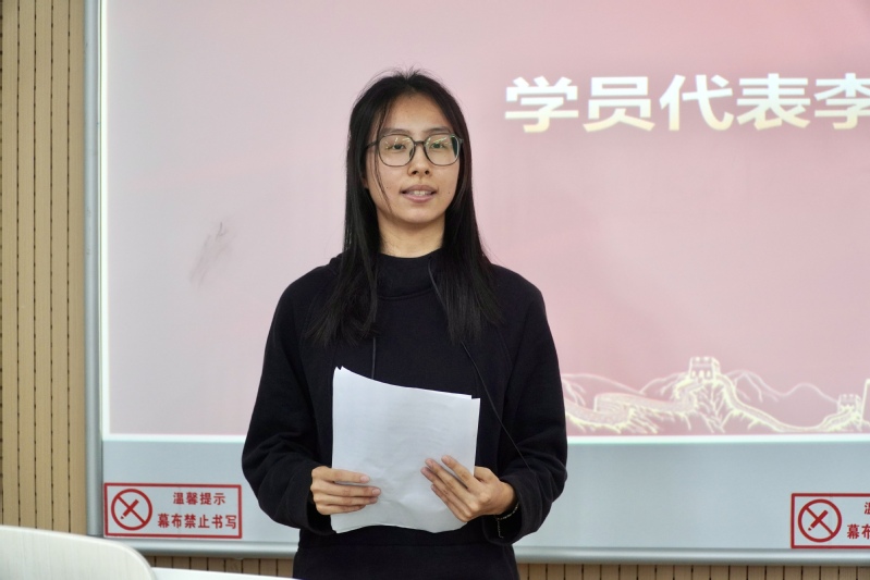 学员代表2024级李嘉欣同学发言,表示将严格按照共产党员标准要求自己,争取早日成为一名真正的共产党员。