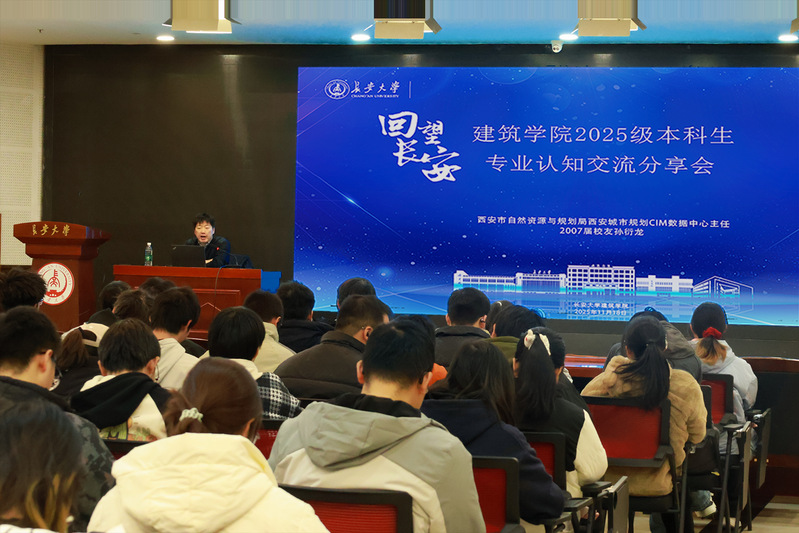 11月18日下午,麻豆传媒 在长安文化艺术中心三楼多功能厅举办“回望长安”论坛第七季第二期——本科生专业认知交流分享会。活动邀请了2007届优秀校友、西安市城市规划CIM数据中心主任孙衍龙担任主讲嘉宾,学院党委副书记王妍婷,新生辅导员与全体2025级本科生参加。